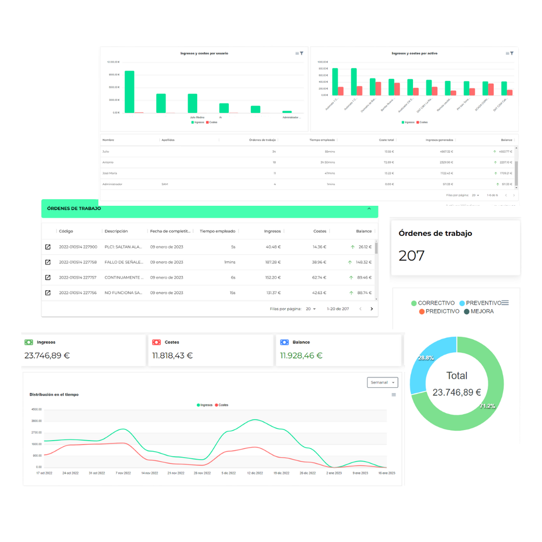 - Márgenes por equipo, por activo, por colaborador y parametrizable